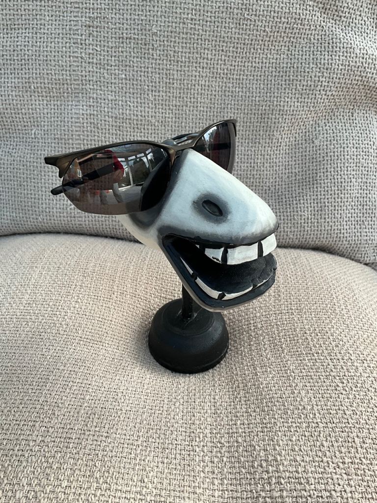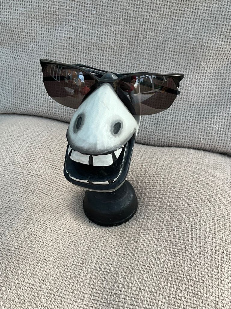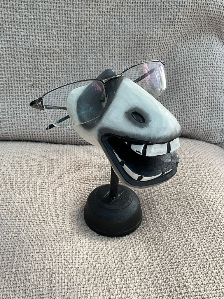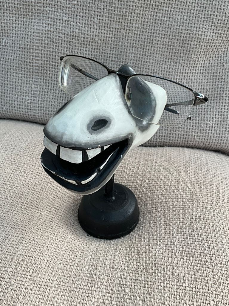 Novelty glasses holder / storage stand. Wooden, painted to show teeth and animal face. Lightweight wooden detachable stand.