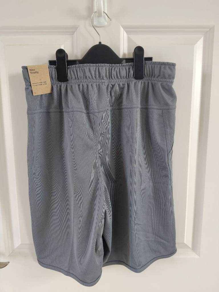 Nike Totality shorts, size small, standard fit, 9 inch length, basketball shorts in grey