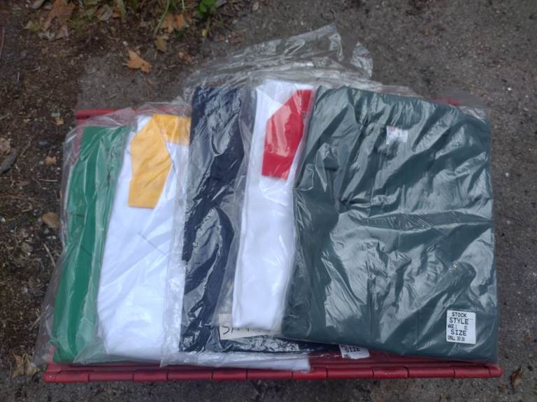 Mixed colours and sizes of trousers from extra small to xxl mainly mens but are some womens as well