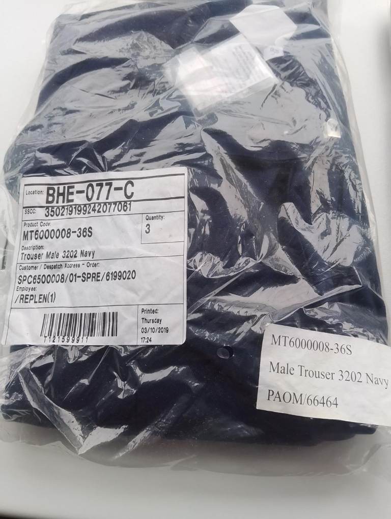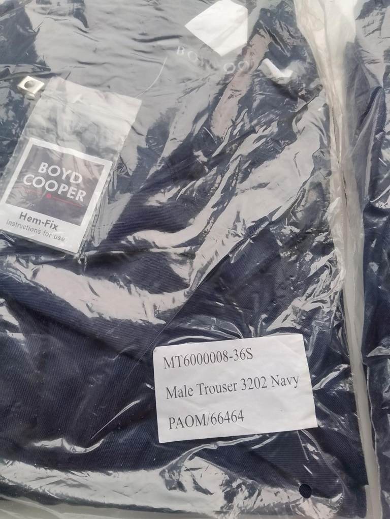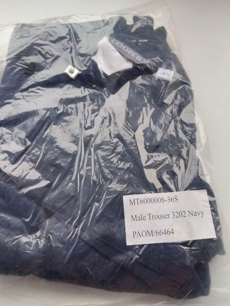 3 pair of brand new Trousers, Navy Blue with Sewn in front seam, 36 inch waist and