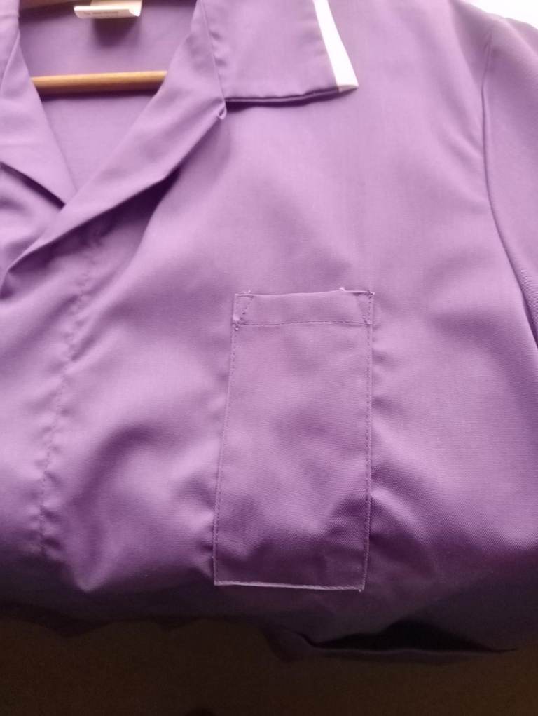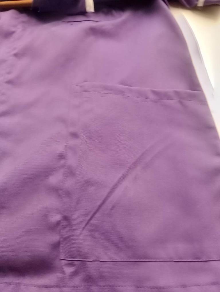 6 Tunics, manufactured by Alexandria, coloured Purple with white trim, 44 inch chest, , very comfortable/ cool, with short sleeves , extremely good quality, 2 Side pockets, and small breast pockets. still in original packaging.