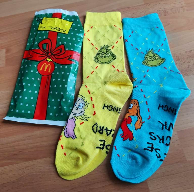 The McDonald's Happy Meal Grinch socks are a festive and fun collectible item perfect for the winter season.