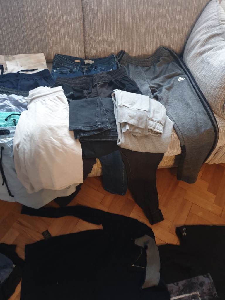 Large collection men's/teenager clothes. Over 50 items in great condLargeition. Jeans, shorts, polo shirts, joggers, t shirts and jackets. Mixture with some good quality items. Brands inc Adidas, top man, Stone Island, lyle & scott, new look etc. Size small and jeans waist 28-30. £20 for lot. Collection Borough Green Tn15