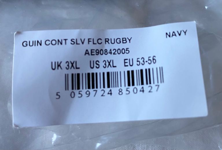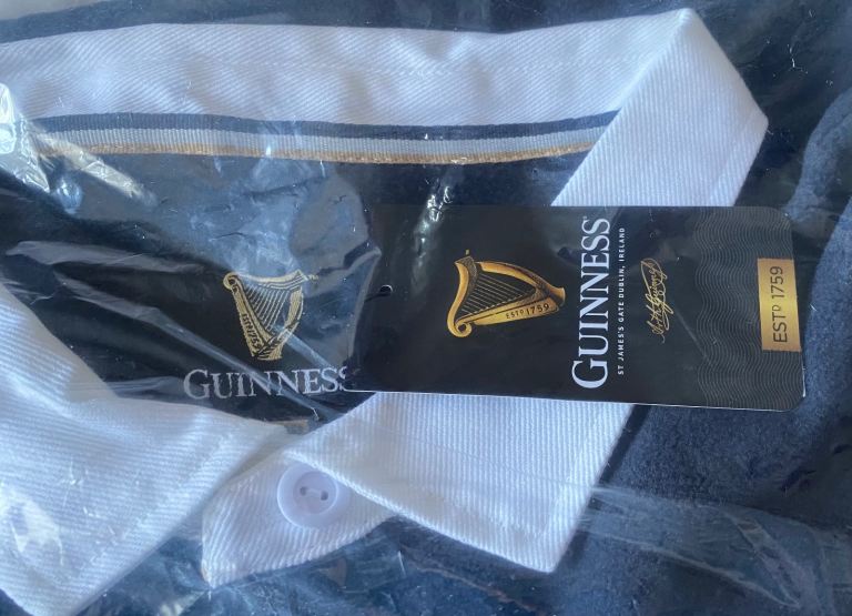 Unworn Guinness long-sleeved rugby shirt, still in its original packaging.