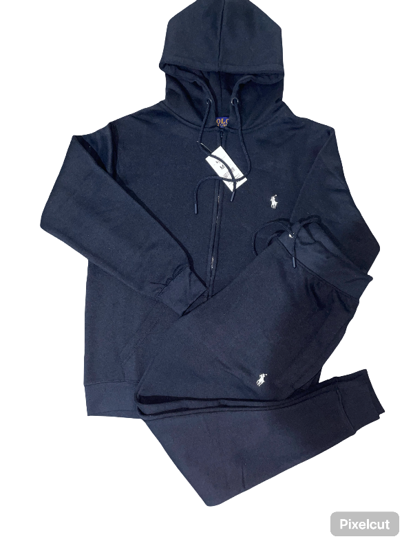 Genuine Ralph Lauren tracksuit in navy blue. Size Medium. Like new condition with no marks or flaws. Soft cotton-blend fleece with embroidered Polo logo on both hoodie and joggers. Smoke-free home. Happy to answer questions. #GotStuffGetCash