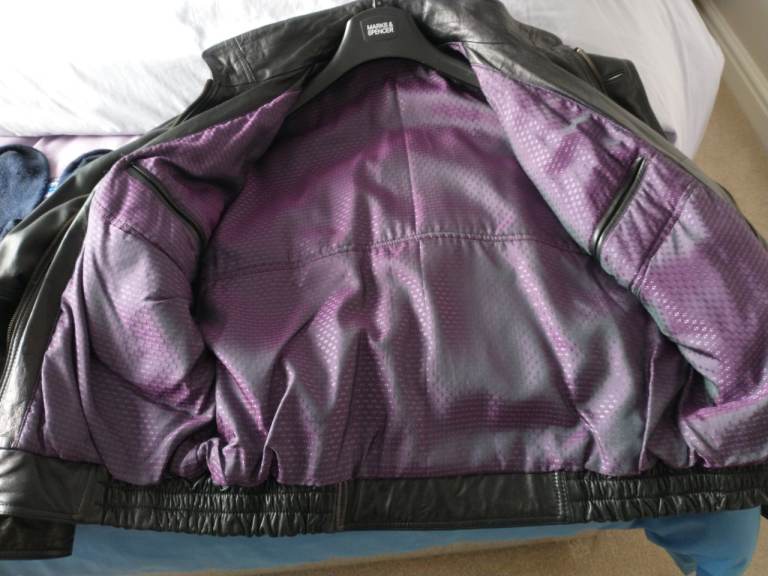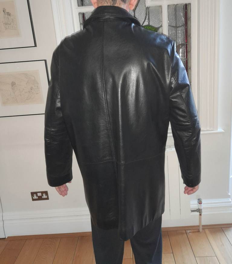 Men's black leather jacket made from 100% genuine leather.