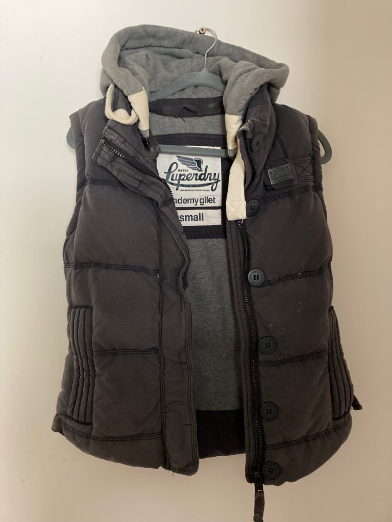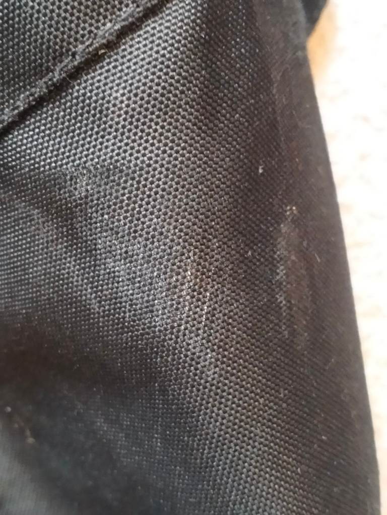 Very minor scuff on the left elbow, see last picture, just brushed the wall..