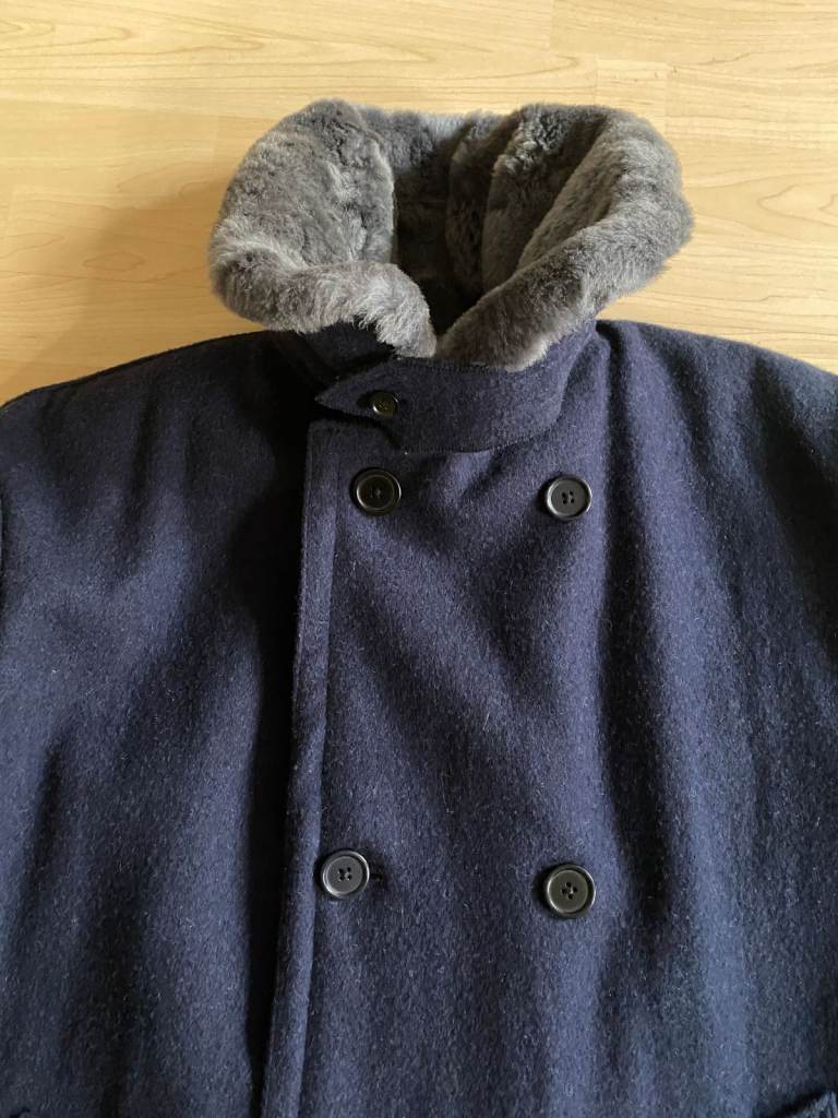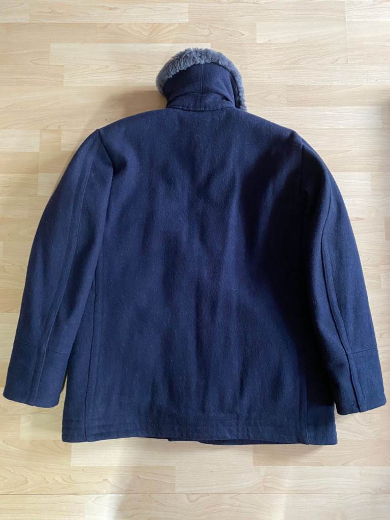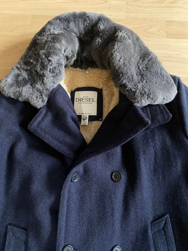 Diesel Men Wool Sheepskin Military Army Overcoat Double Brest Jacket Navy XXL