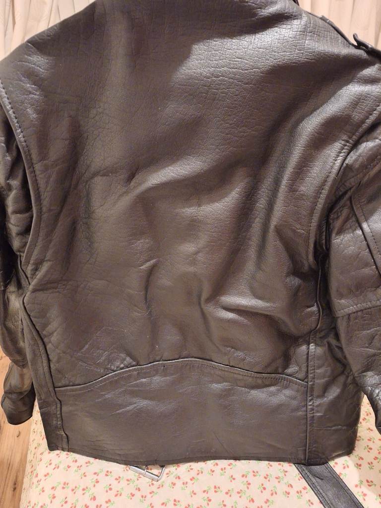 Heavy duty black leather motorcycle jacket. Size 40 inch short. Good as new. Only worn a few times. No marks or cracks in the leather. Discover your inner rebel!. Bargain price. These retail around £140 minimum