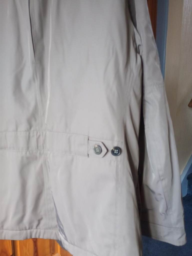 It has a full zip and button fastening down the front