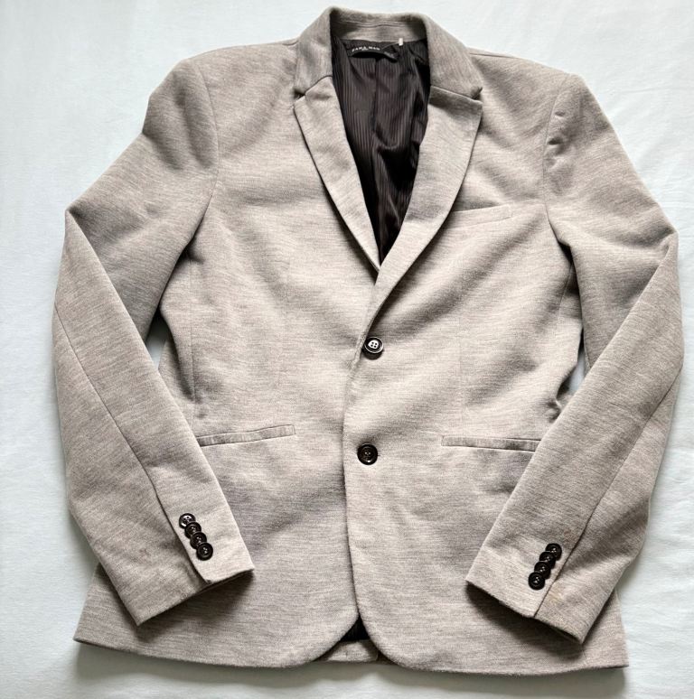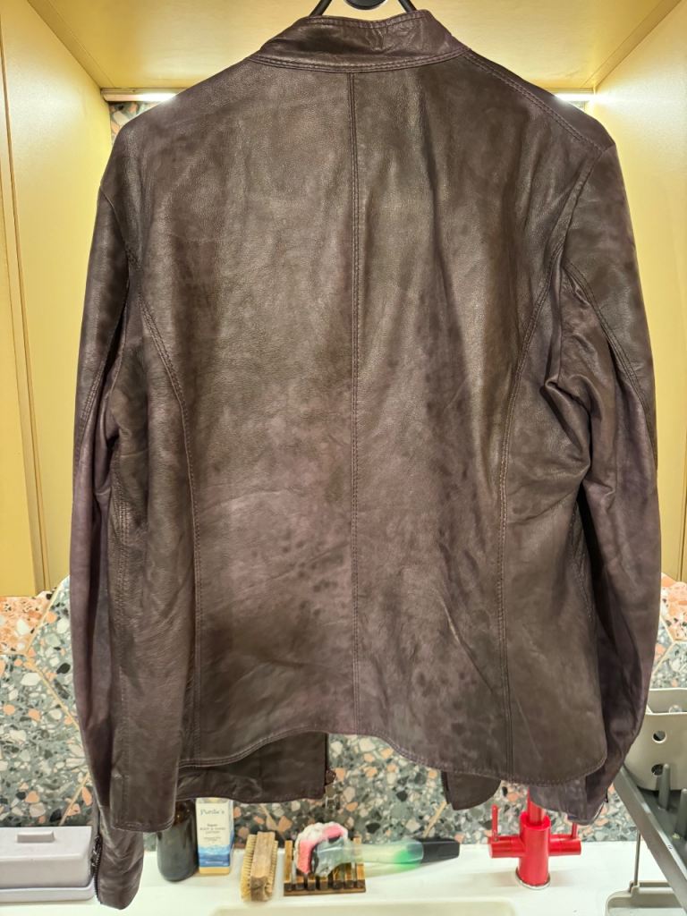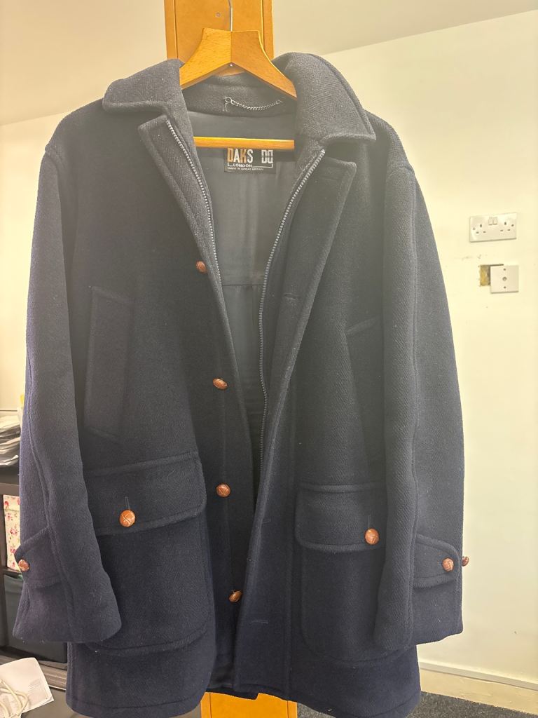 Purchased this jacket in Italy when I had a few vinos and unfortunately it’s too neat for me. The jacket is unworn in mint condition and is a dark purple colour. I’m 6ft tall 38-40” chest with a 32” waist and it’s just too small for me.