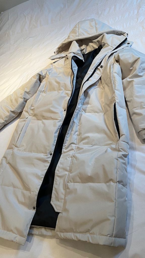 Built for performance and everyday wear, this men’s long puffer jacket delivers warmth with a sleek, contemporary silhouette. The down-insulated body and sleeves provide lightweight insulation, while the detachable hood with adjustable drawcord offers adaptable protection against changing weather. A two-way front zip concealed beneath a snap placket ensures a clean look and customizable comfort, complemented by fleece-lined hand pockets for added warmth. Finished with a rounded hem and extended length, it’s a modern outerwear essential designed for cold climates.