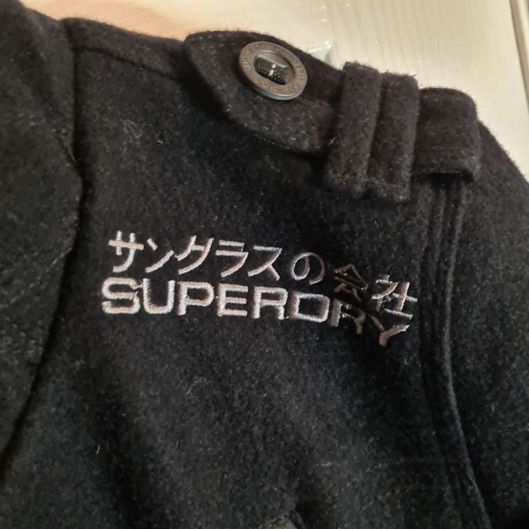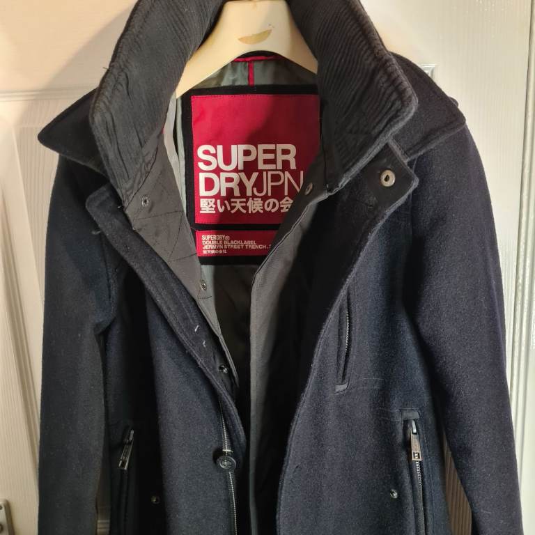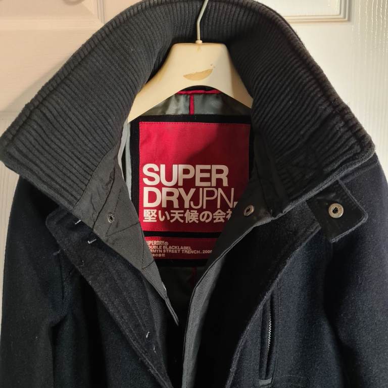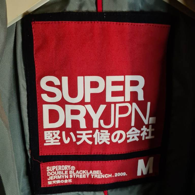 Men's Superdry Double Black Label Jermyn St. Trench Coat Size Medium