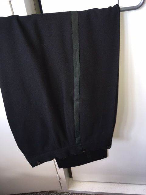Elegant, stylish retro-style dinner-suit. Bespoke (made in the 1930s). Size medium. Worsted material, double-breasted jacket, button flies. Still in good condition and recently dry-cleaned. Can deliver within Oxford city.