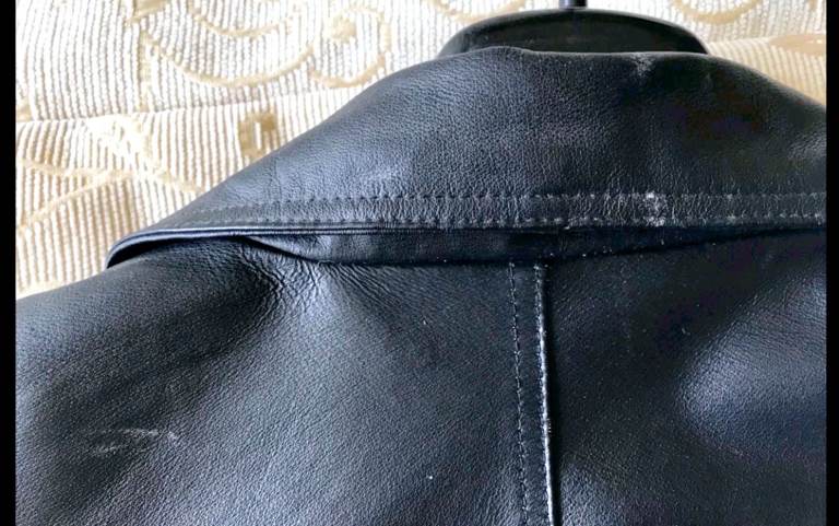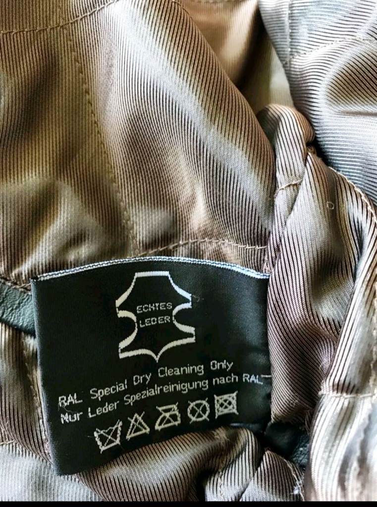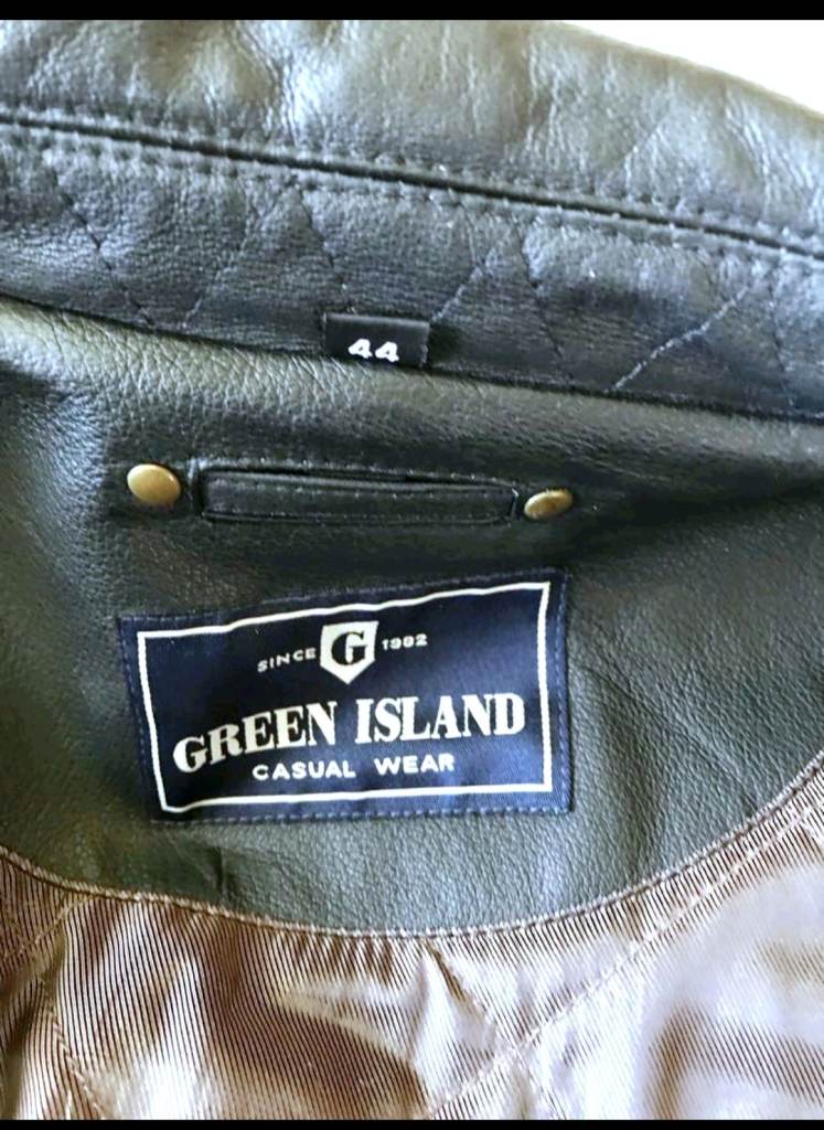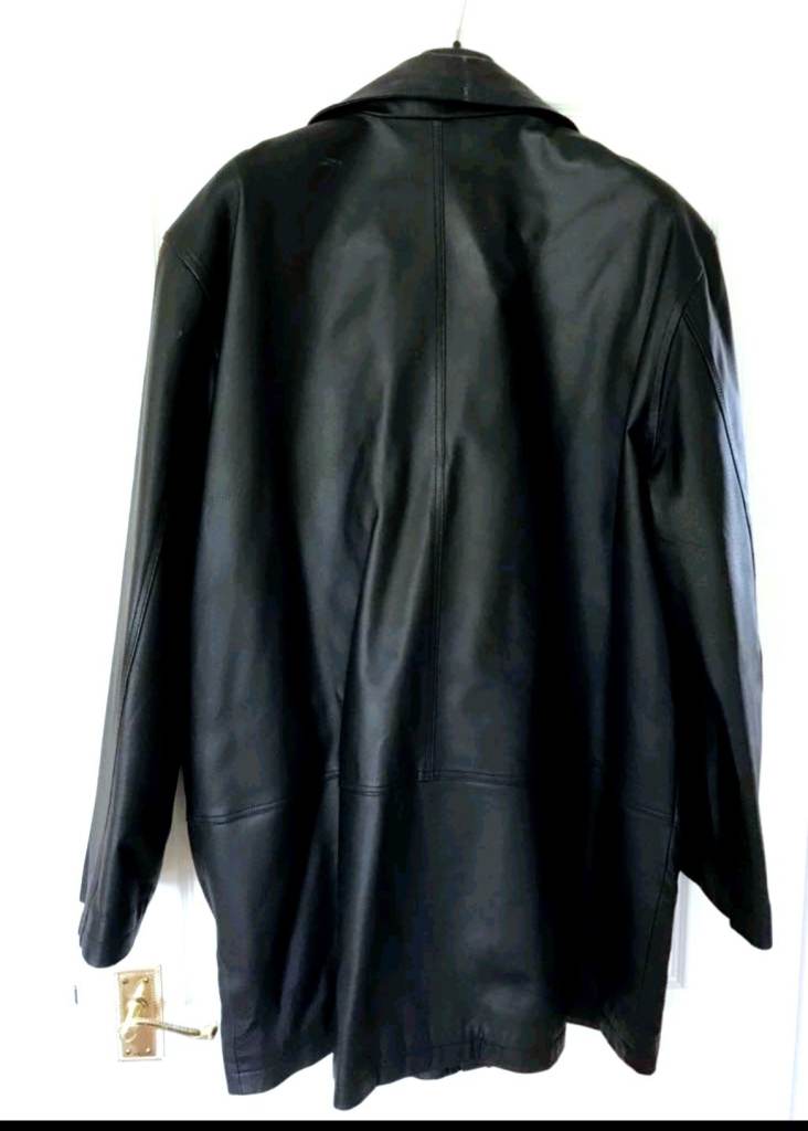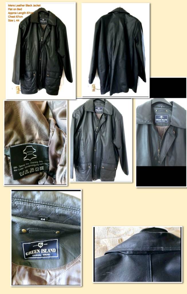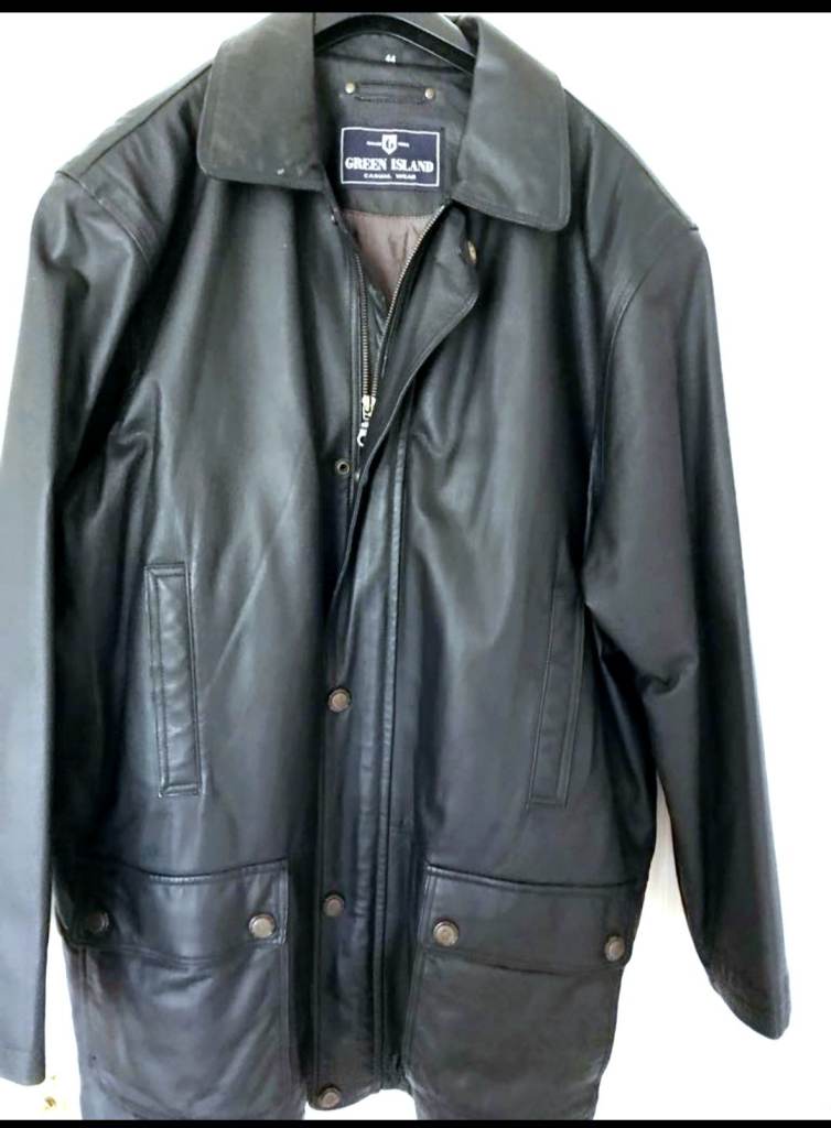 Mens Black Leather Jacket Size L44 Green Island Fully Brown Lined
