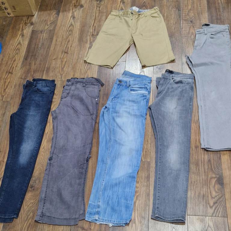 bundle of 5 mens jeans with 1 shorts, most jeans are from next in very good condition others in good condition. mostly straight leg and slim fit but 1 is super skinny fit. Size 30s