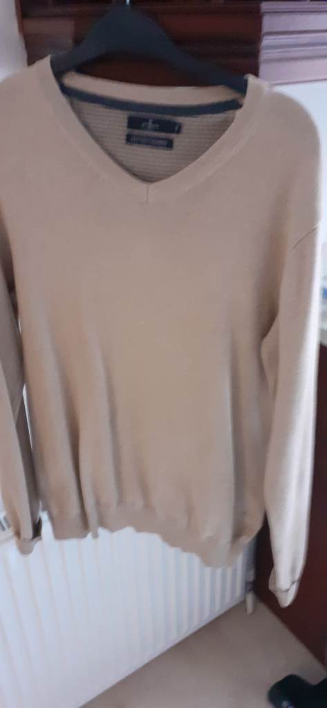 2 mens long sleeved summer cotton and Cashmere jumpers 1 dark grey 1 light beige maker Jeff Banks chest size 38-40ins very good quality lightly warn. Collect only
