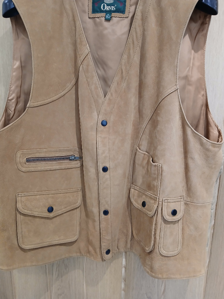 ORVIS fishing waistcoat in pigs skin, tan size XL. Never been worn. Surplus to requirements.