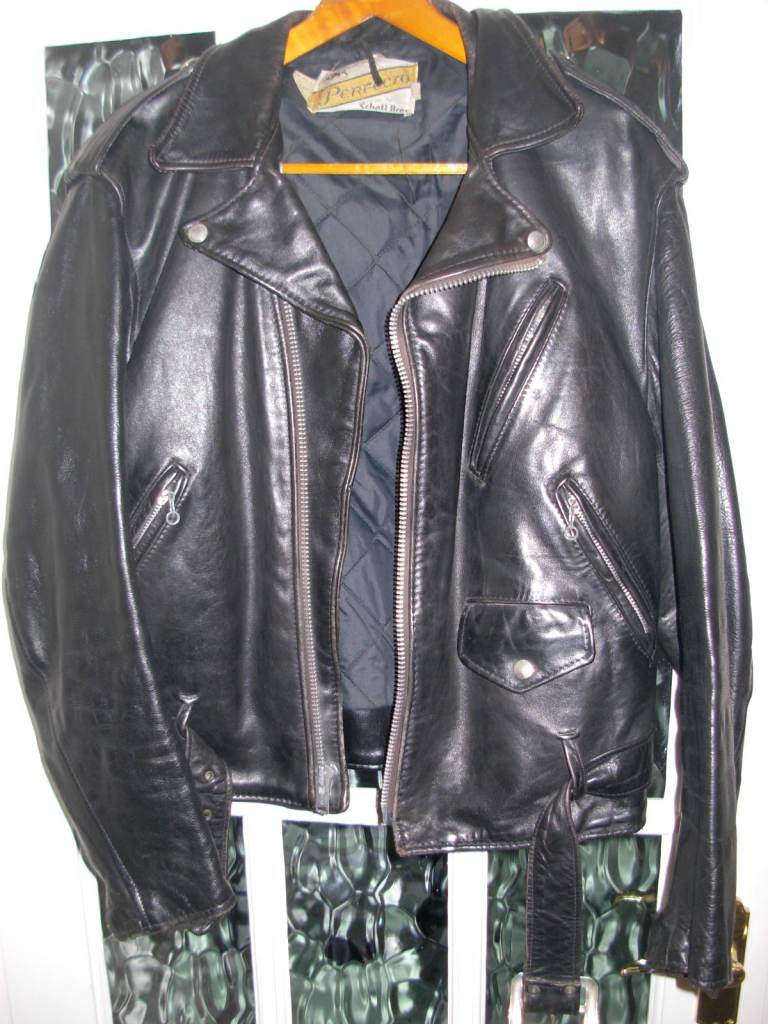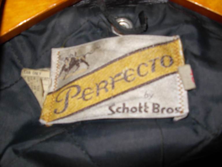 Schott Perfecto leather biker jacket, I think from the 1980's. Lining inside jacket ok, great patina, size 46 although I would say it is closer to 40 -42 inch chest. Sleeve zips damaged but main zip ok. Only selling because it no longer fits. Buyer collects, buyer welcome to try on before purchase.