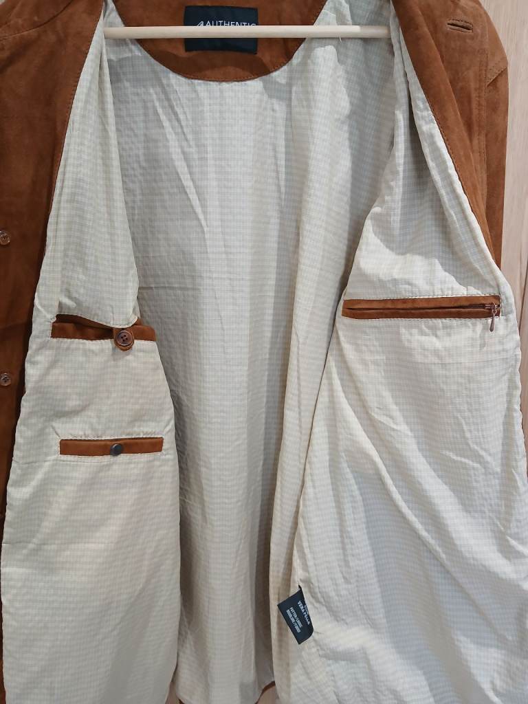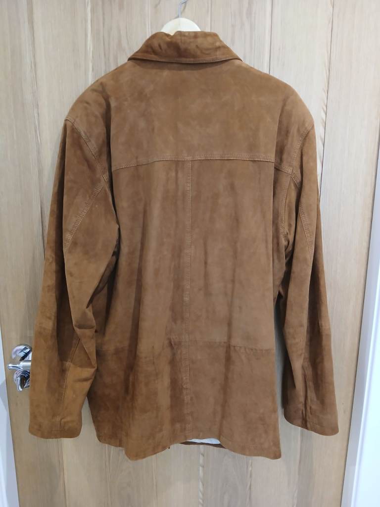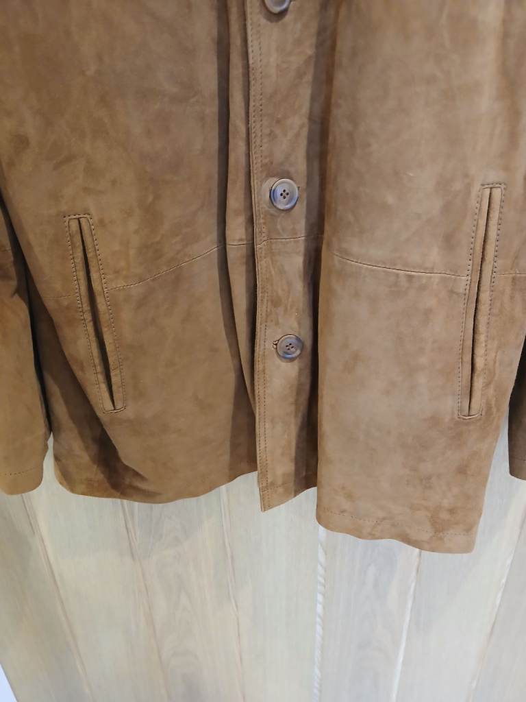 Gents tan suade jacket never been worn size L. Beautiful soft leather. 3 inner pockets. 2 side pockets. None smoker.