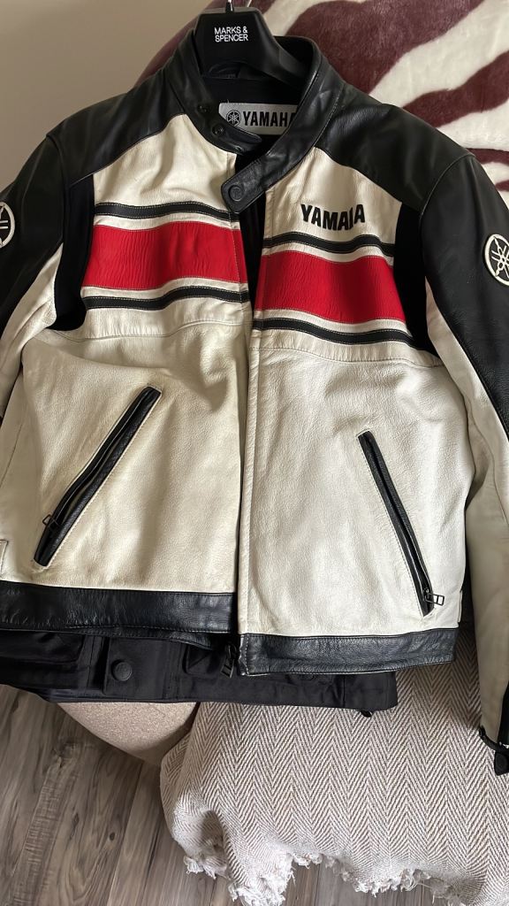 Lovely light weight jacket has shoulder and elbow protection. Great condition no breaks or cracks just needs a clean so I’m selling cheap a good clean will have the white looking brand new. size 56 large. 46=56 eu