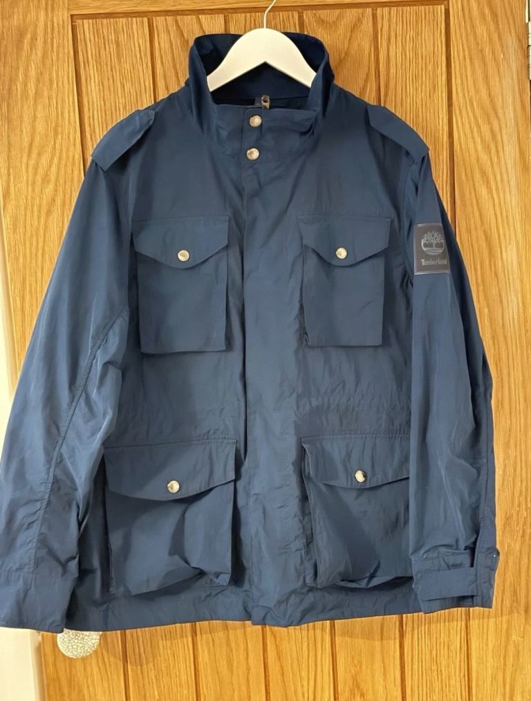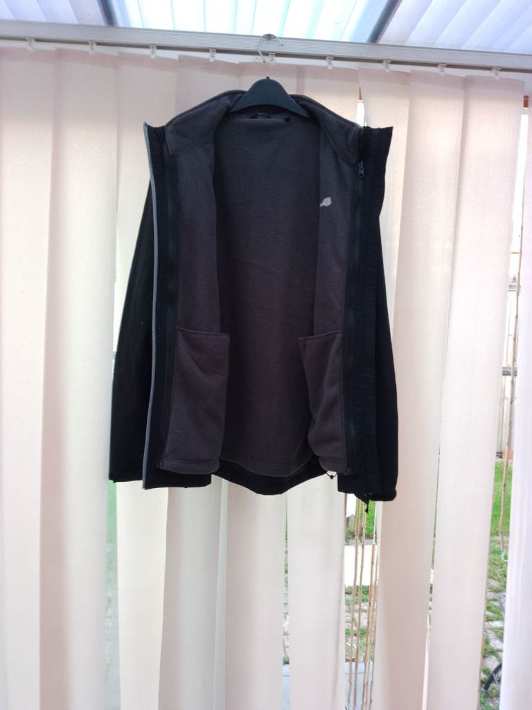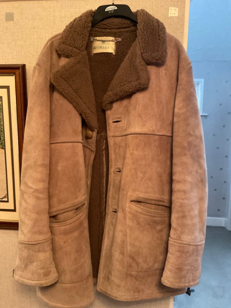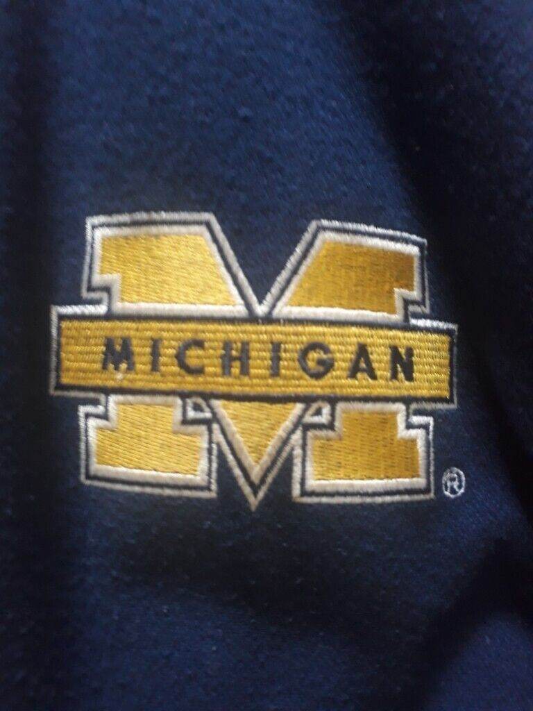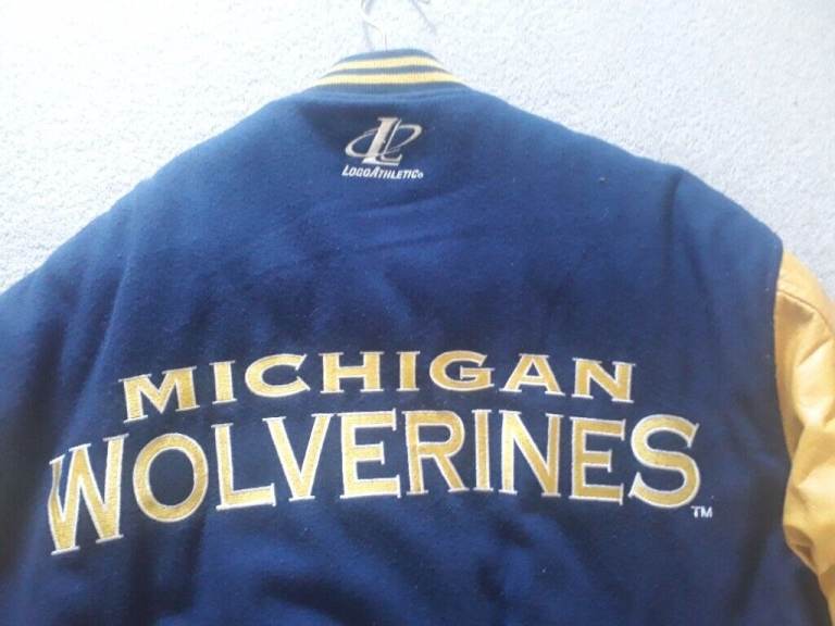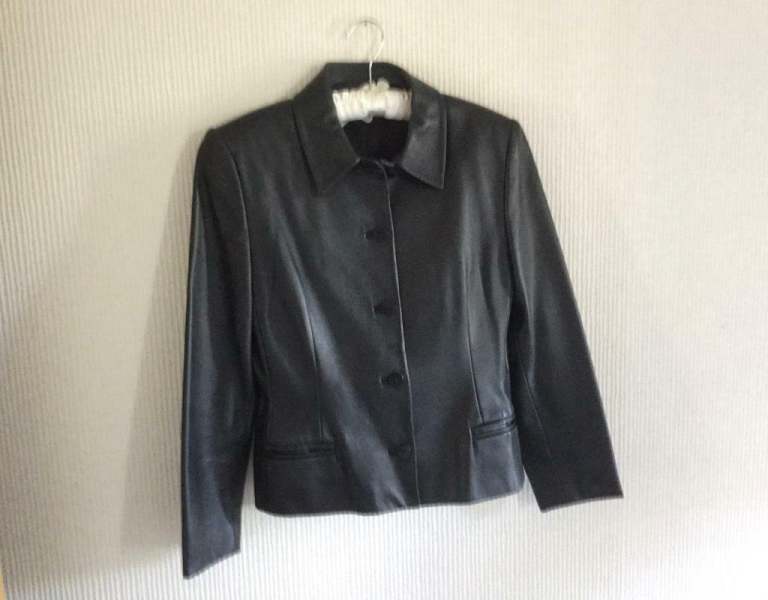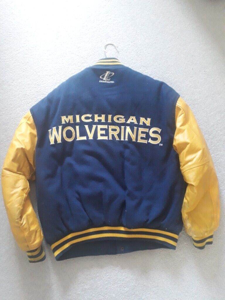 HAS LEATHER SLEEVES AND IS MEDIUM IN SIZE