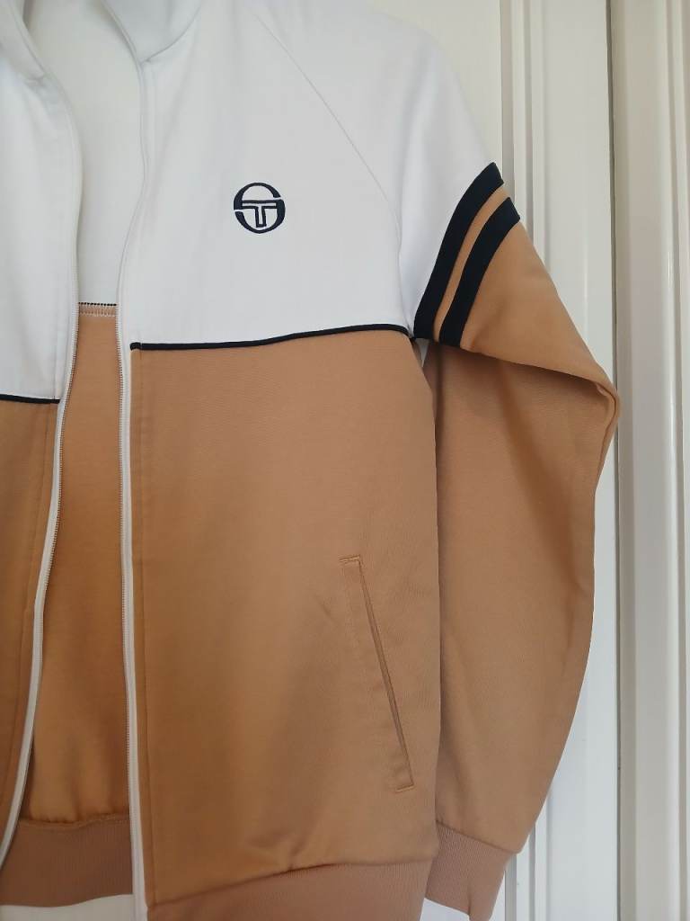 Beige and white Sergio Tacchini zip up jacket.