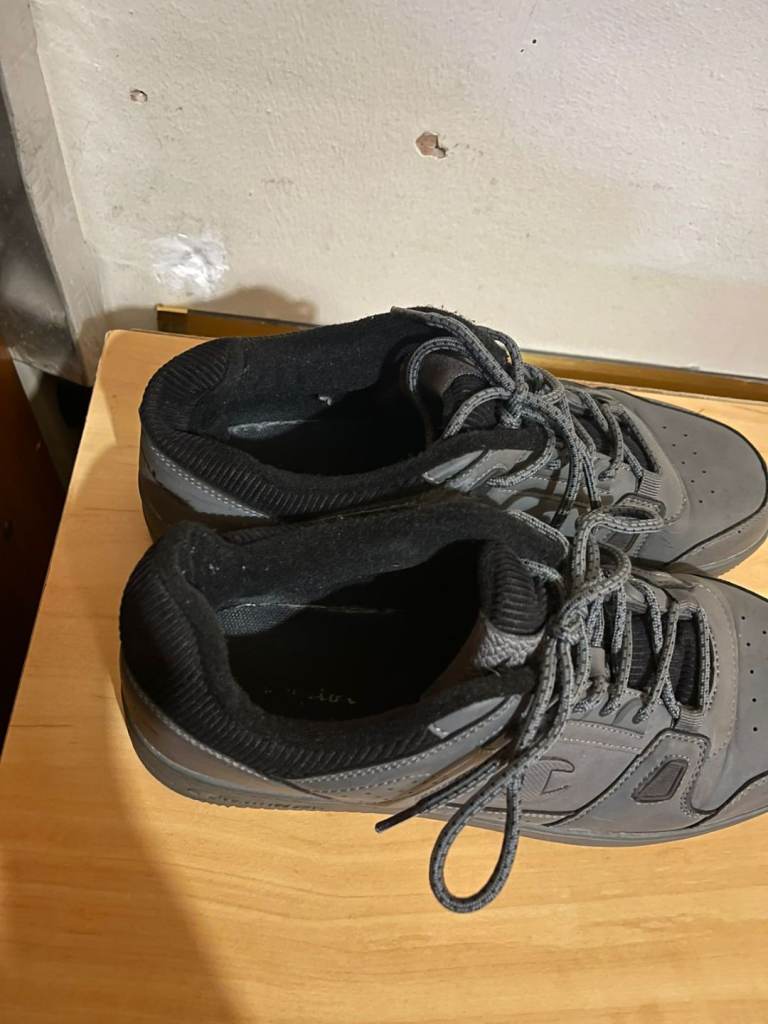 Color: Charcoal Grey upper jisme black accents aur gum-colored outsole hai.