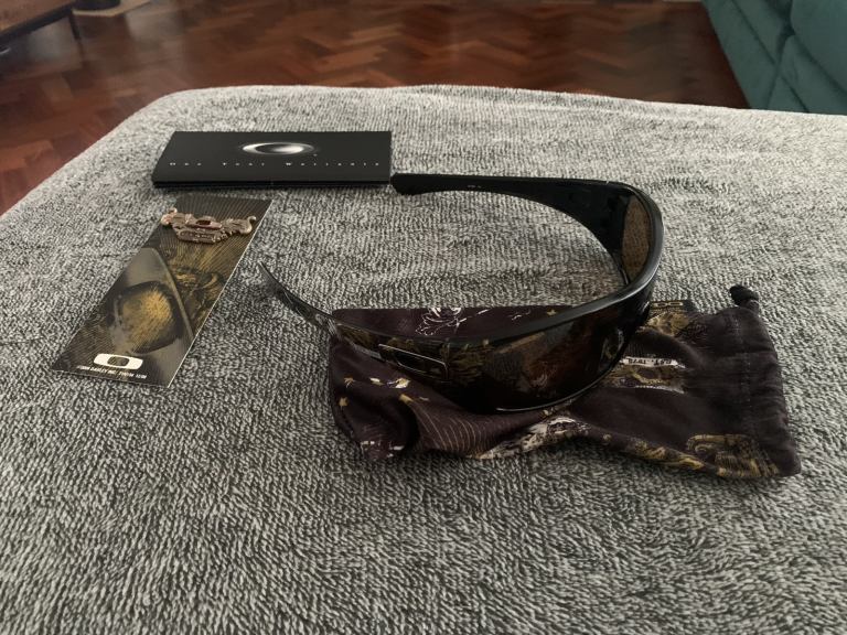 Polarised/tungsten black iridium lens, with box, cleaning cloth, and pin as limited edition set.