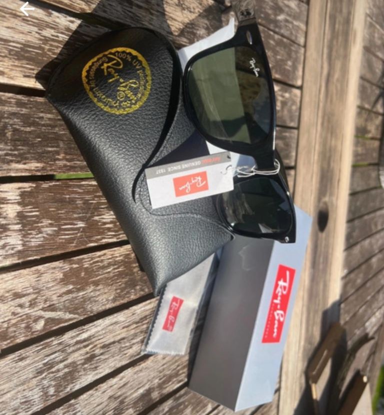 New, boxed with RB case & cloth. Rayban logos & lense etching as expected.