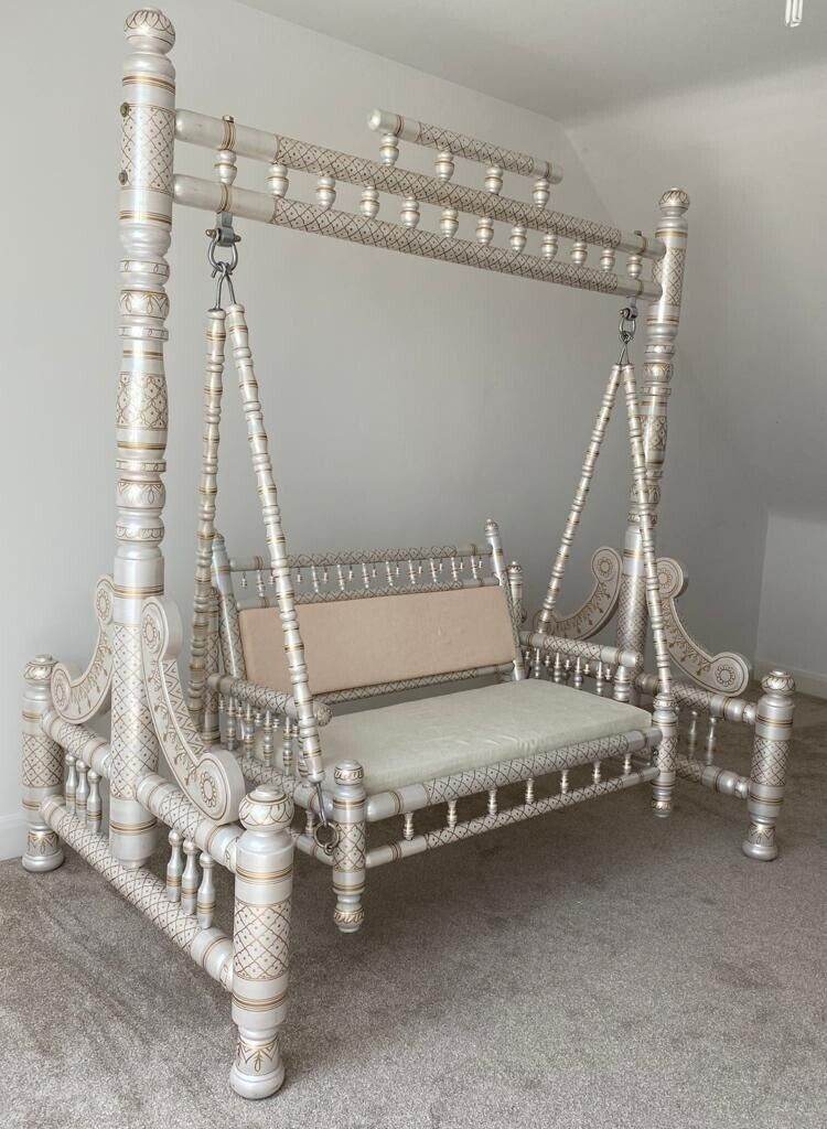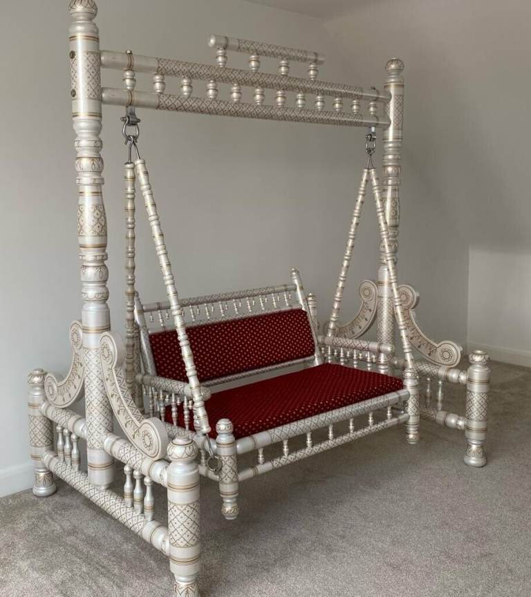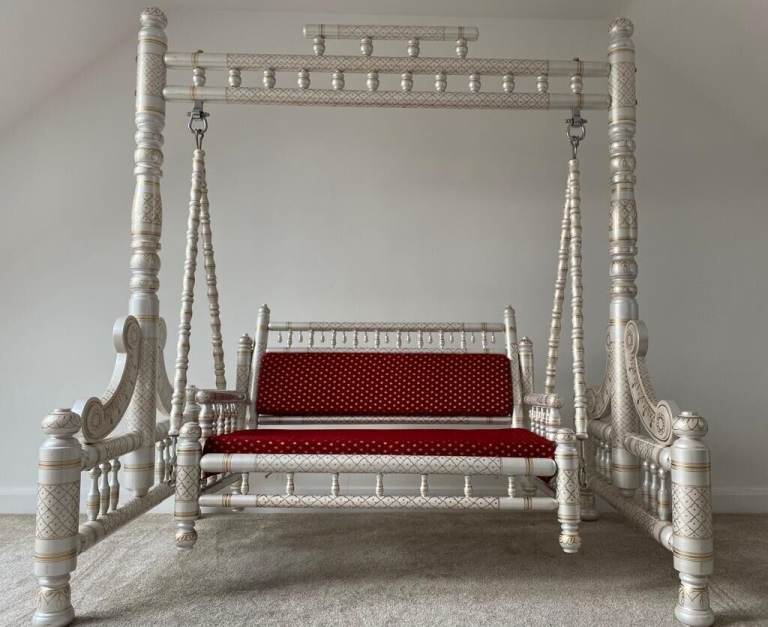 £1,500 - Swing / jhula with cream and red covers (images 1 & 2 & 3 & 4). 6ft width, 7ft height.
