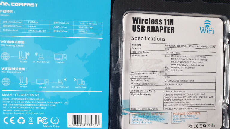 This WLAN wifi adapter comes with USB Type A connector, it supports USB2.0 standards interface. This adapter is designed to operate in 2.4GHz at 150mbps and 5.8GHz at 433mbps jointly providing 600 mbps at AC level.