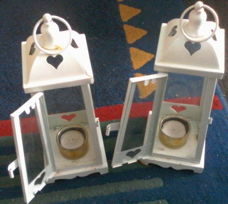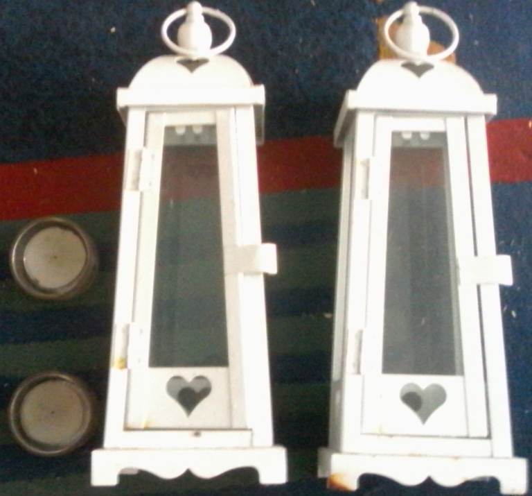 2 white lanterns, used but in good condition, £12 the pair, we do not post or deliver, collection only, (Dover)