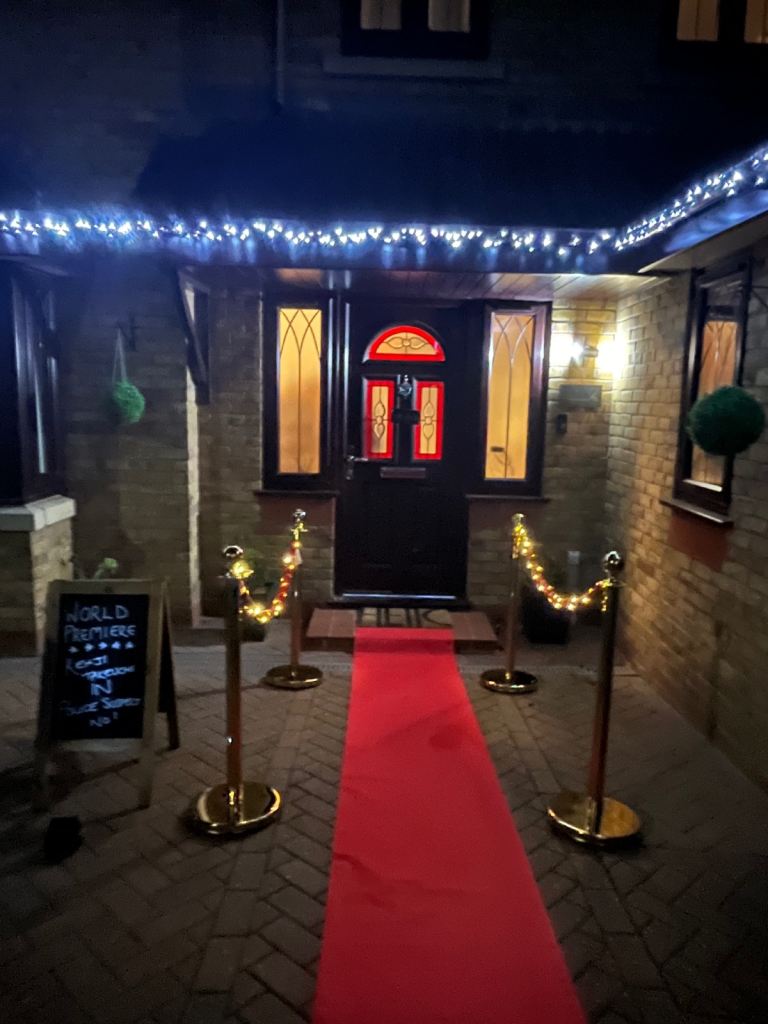 Gold steel piston with red velvet rope