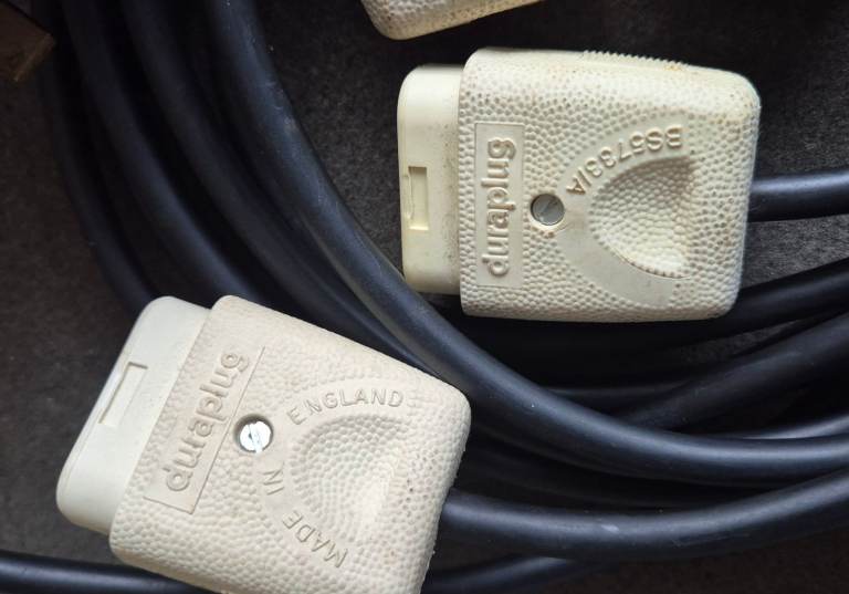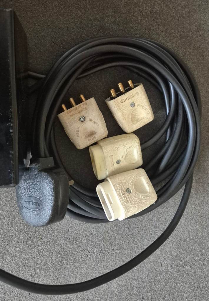 The 240v cable is approximately 2.2m long and the two 12v cables are approximately 1.3m long and fitted with white Duraplug sockets that have white Duraplug plugs attached. Any questions please phone or text preferably.