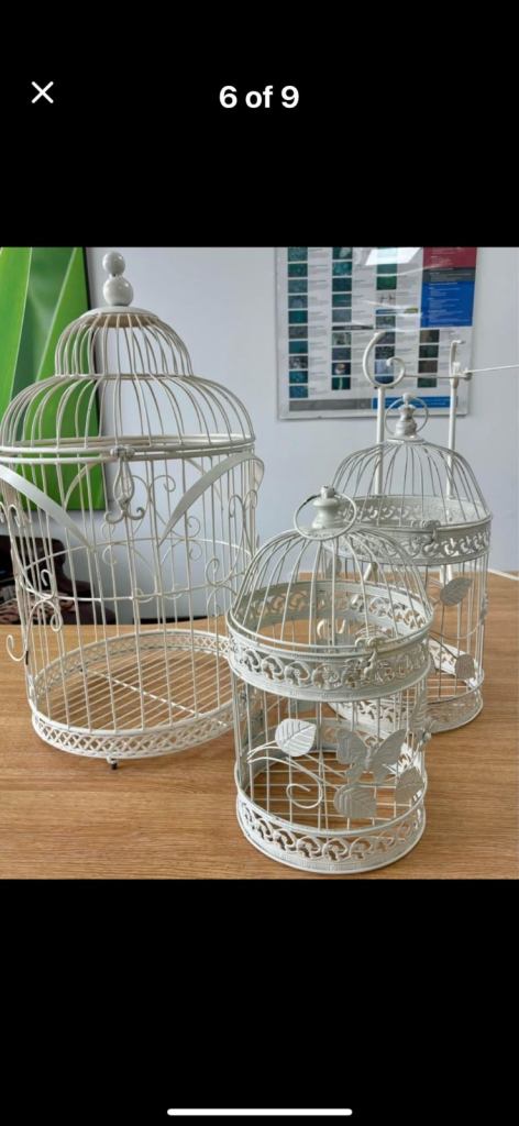 3 birdcages, 1 with a stand.