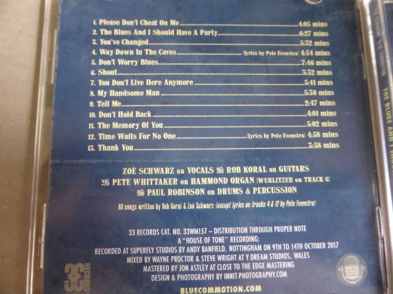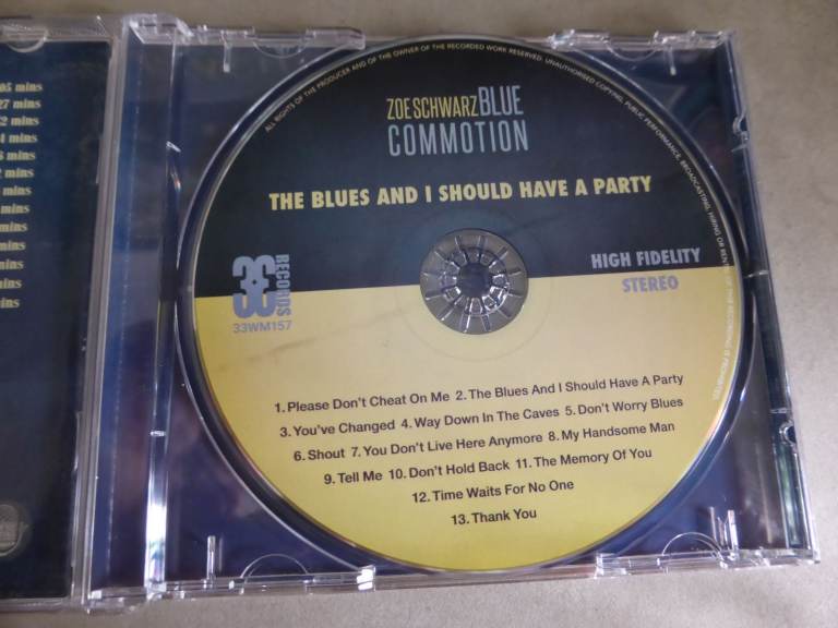 Blues cd The Blues and I should have a party by Zoe Schwarz and Blue Commotion. A great blues CD, new and unplayed it was bought at one of her last gigs at Crockham and as usual with me I already had a copy, so its cash on collection only from Farnham GU9