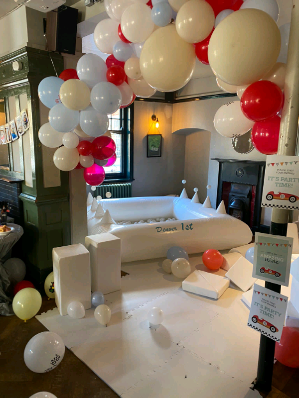 Pastel white bouncy & ball pond