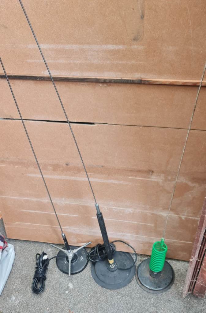 Here I have 3 CB radios all in working order little bit dusty but they will be cleaned ASAP there's a president barry with changeable screen colour / a tti TCB900 also with changeable screen colour and a communications ni-440-DX they all have power leads the president barry has cigarette lighter plug attached you can still buy these on ebay from £99 upwards my price is for all 3 I've thrown in a bunch of mag mounts with aerials as seen in last photo and before any asked yes there is still people on CB and even some amateur radio guys speak on them still I've also added a swr/power/matcher meter with patch lead