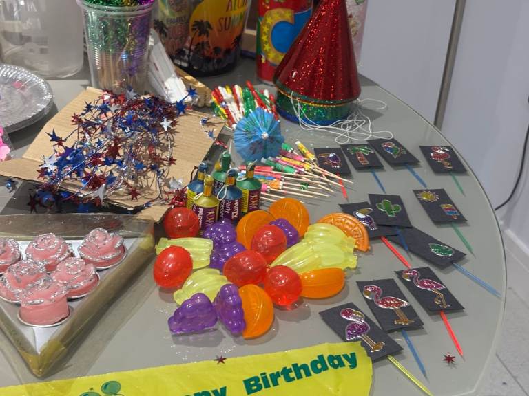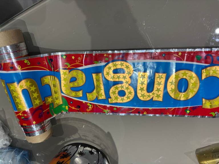 1 very large birthday badge/party poppers