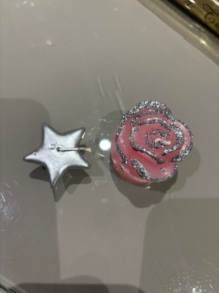 6 pink glitter candles