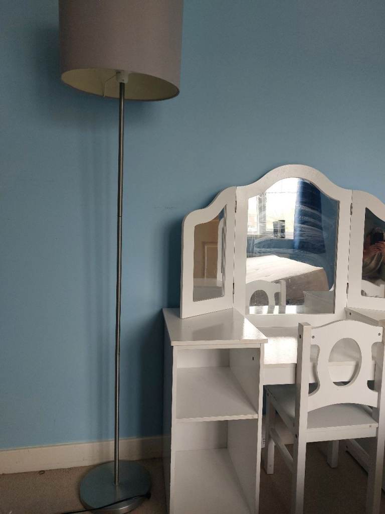 White wooden child's dressing table with mirror and chair. From a pet and smoke free home. Collection from High Spen. I will be at the property on Friday as property currently being vacated.