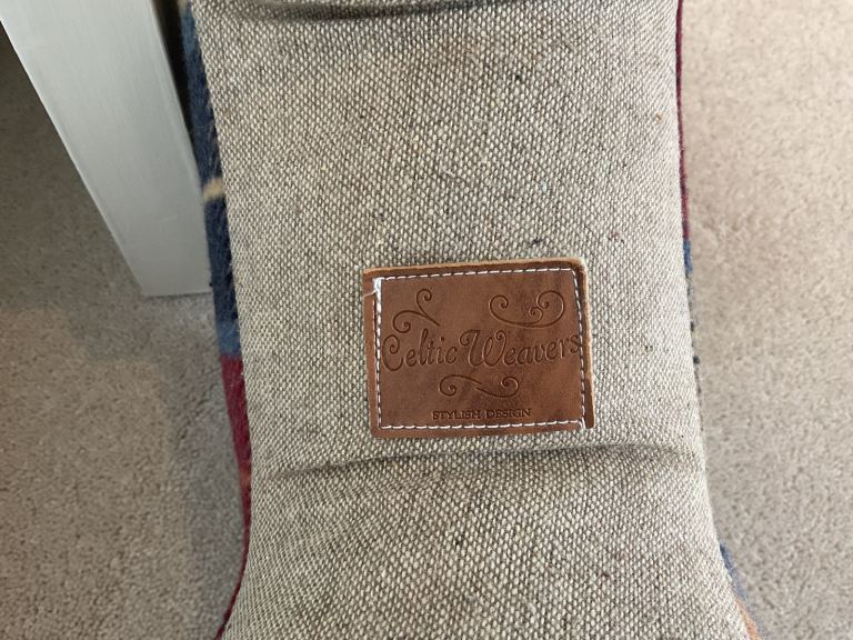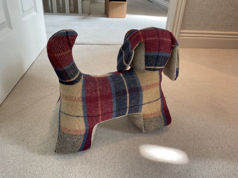 Celtic Weavers dog door stop. Soft wool Irish tartan. 33cm long x 20cm deep x 30cm high.