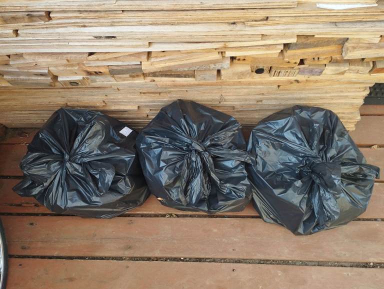 Each bag is standard 45L black bin plastic bag.