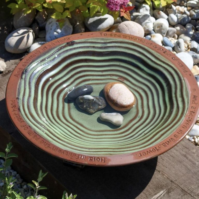 Bird Bath features a visually attractive and functional ripple step design, providing extra footing/grip for wild birds.
