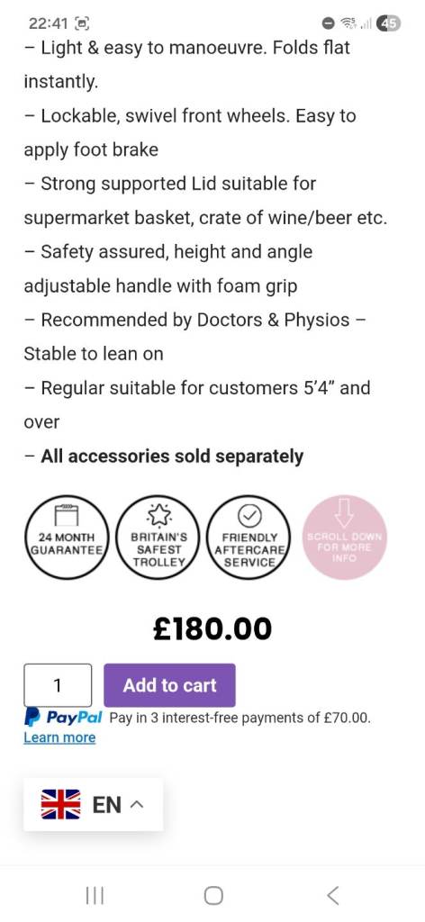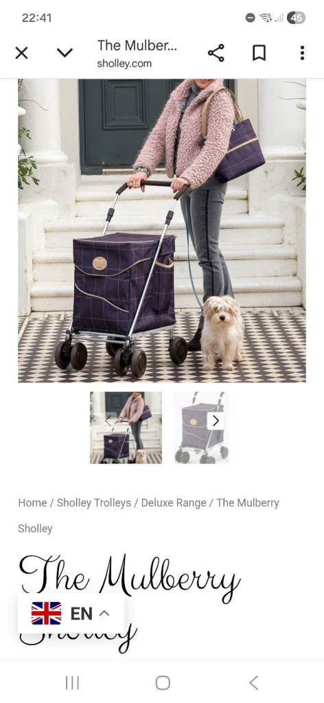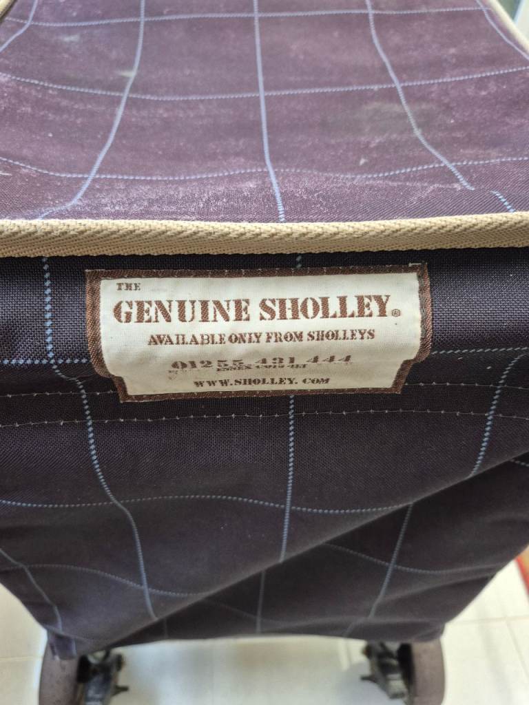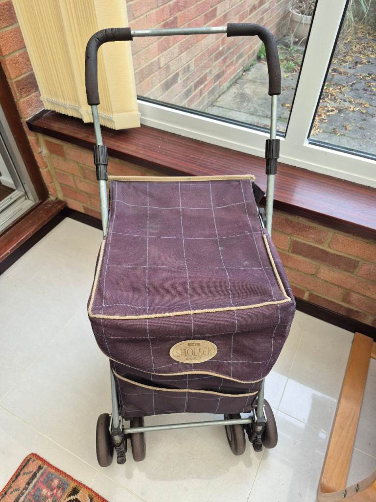 Genuine Sholley Mulberry shopping trolley. All working. Very sturdy and excellent for shopping and also for people with mobility problems. Some slight marks to the outside as can be seen in the photos but clean and no tears or rips etc.