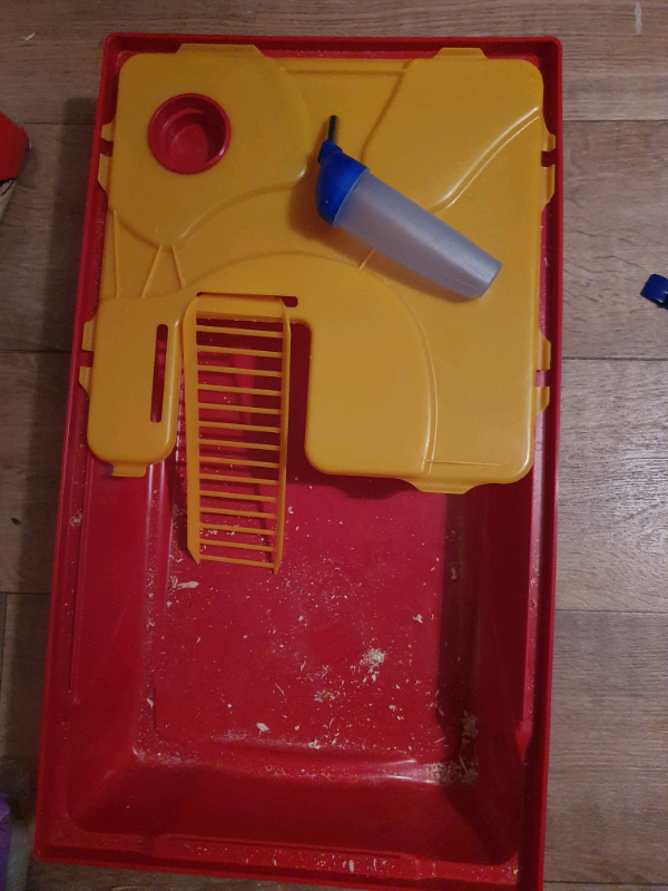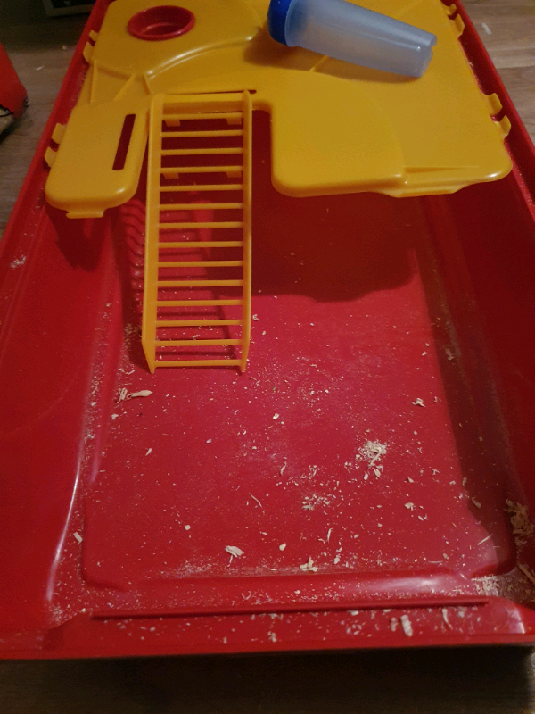Excellent used condition, like new, with accessories hamster cage. It has easy access to the watering bottle on the top layer. It's easy to clean as the lid clips off but it also gives you easy access to your pet with the smaller gate on top of the lid.