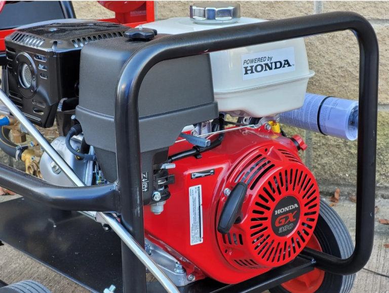 Cold water pressure washer powered by a Honda GX390 petrol engine. Featuring a premium series Comet pump, this machine produces 21 litres per minute water flow at a pressure of 200 bar. Includes chemical pick up hose complete with filter, and adjustable pressure nozzle for chemical application