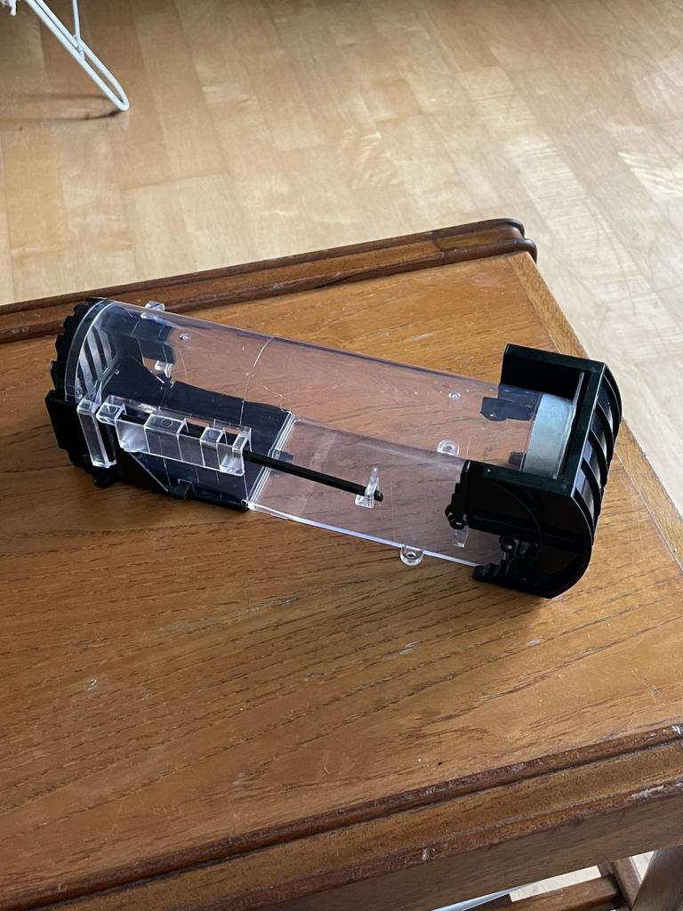 It was never used. I put cheese in to attract the mouse but it was not interested in food at all, only in playing around the furnitures and plants haha. There is no point in me keeping the trap then.