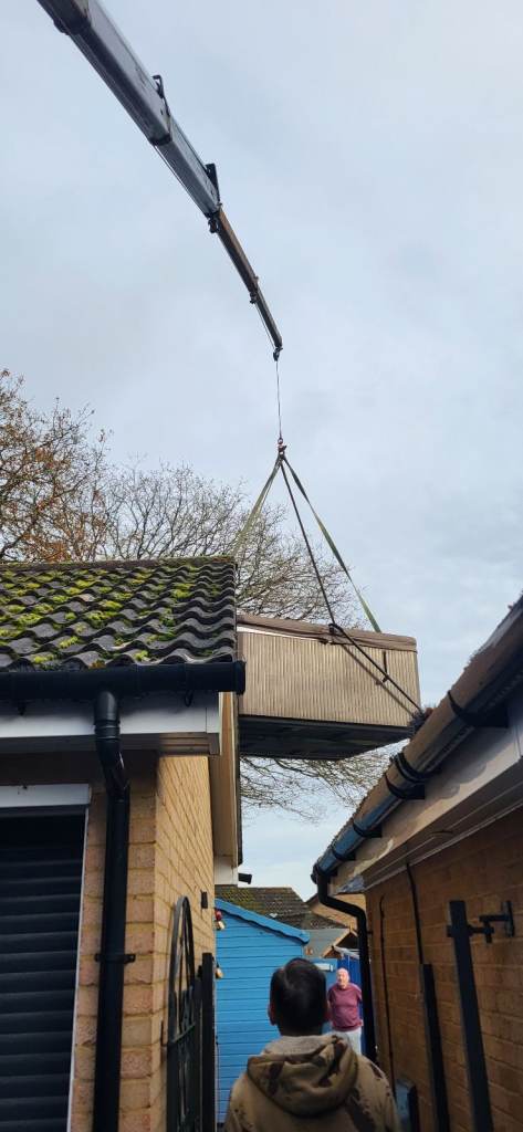 Lorry crane based in Kent, container hottub jacuzzi spa relocating, steel fabrications and machinery